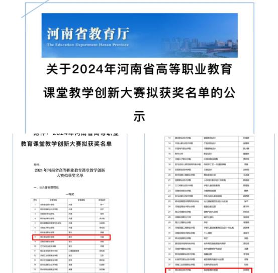 近日,河南省教育厅公布了2024年河南省高等职业教育课堂教学创新大赛的获奖名单,亚洲天堂网站再次传来捷报,荣获一等奖一项、二等奖一项,续写了学院在教育教学创新方面的辉煌篇章。