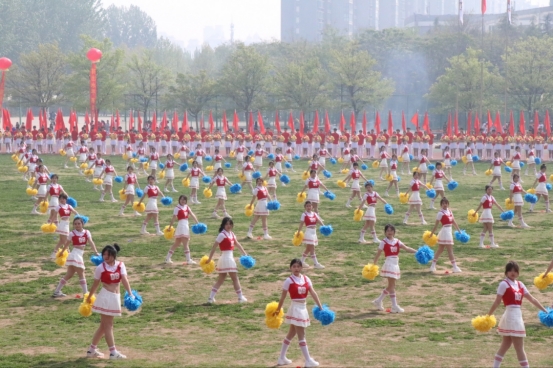 啦啦操是更一场活力与美的盛宴,我院200名表演者们踏着悦动的音符,迈着轻快的步伐,以优雅而充满活力的舞姿,诠释着这项运动的独特魅力。她们的舞步轻盈而灵动,宛如在空中绘画出一幅幅美丽的画卷。手臂的挥动、腿部的跳跃、身体的旋转,每一个细节都精准到位,展现出力与美的完美结合。